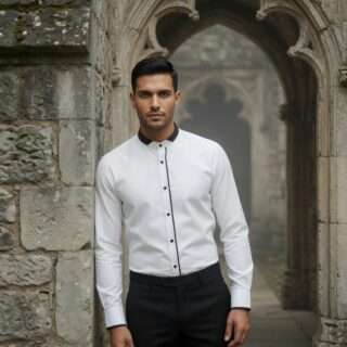 White Band Collar Shirt with Black Piping