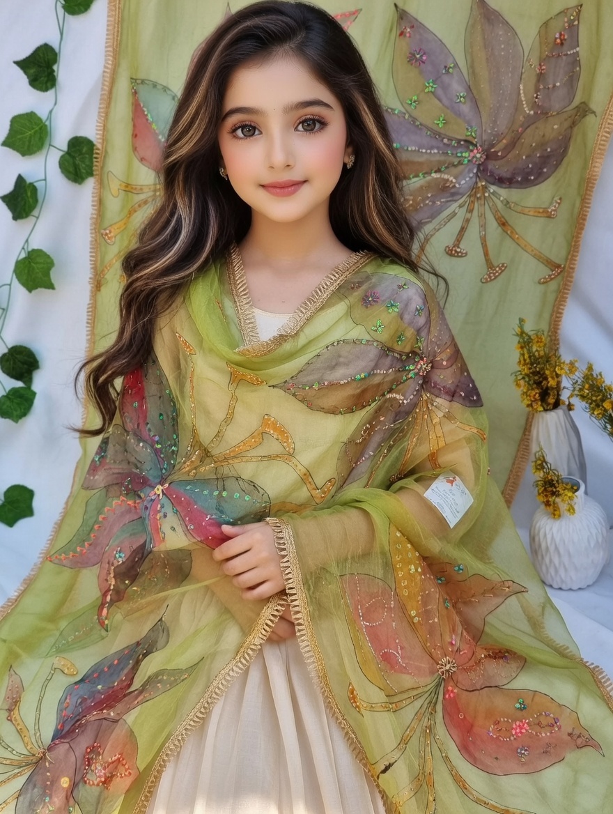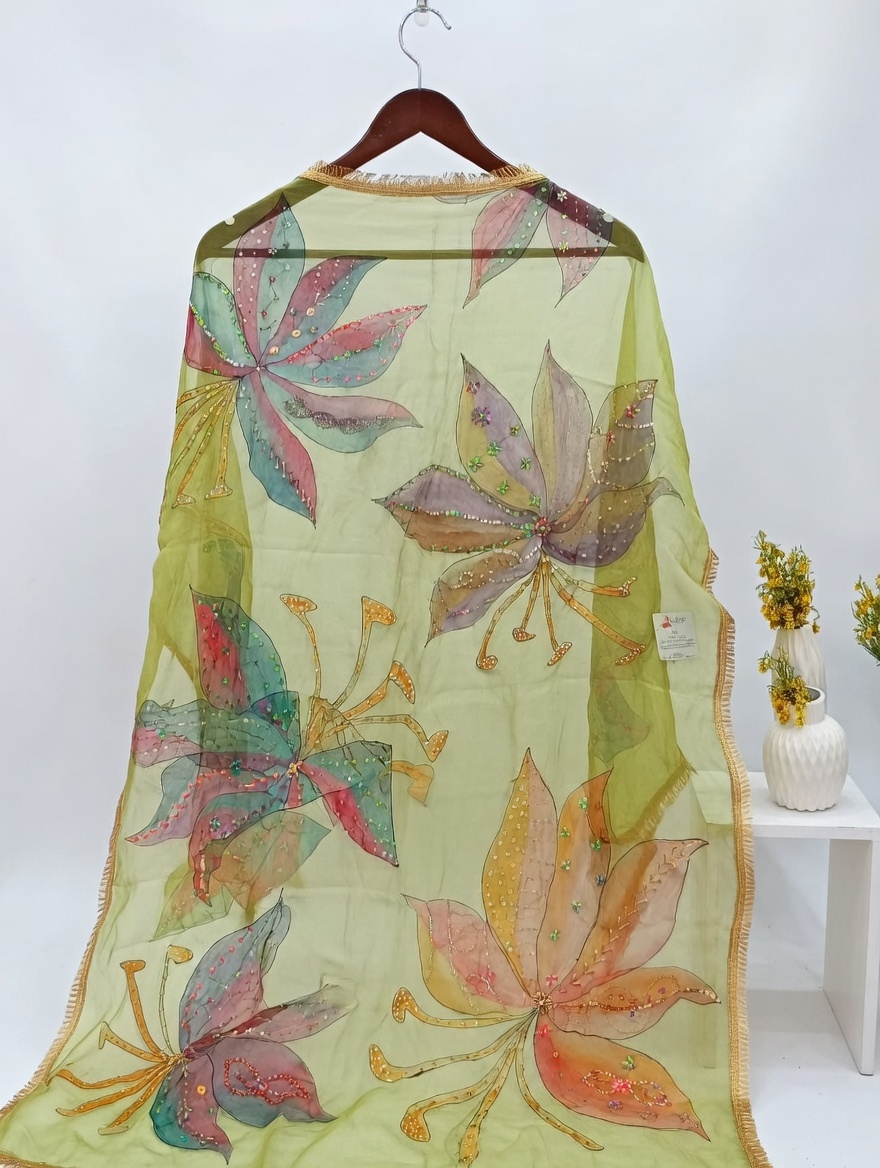 Introducing “Enchanted Blossom Dupatta” – our exclusive hand-painted dupatta that is a symphony of elegance and artistry. Every stroke, every hue, and every detail is meticulously crafted to bring the magical allure of blooming flowers to life. Adorn yourself with “Enchanted Blossom” and let the exquisite fabric painting artistry narrate a tale of grace, sophistication, and ethereal beauty.