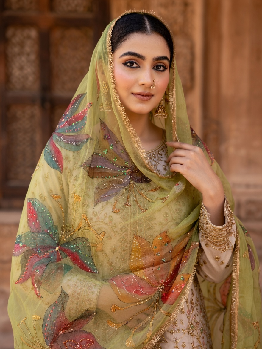 A Canvas of Dreams: This dupatta is not just an accessory but a masterpiece celebrating the harmonious dance of colors and textures.
